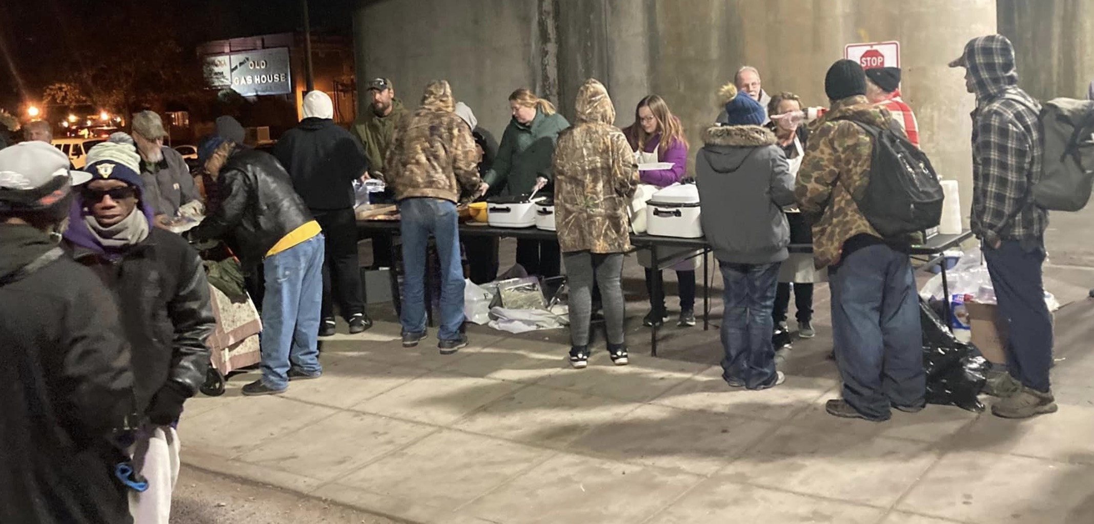 Every couple months we serve the homeless in Fort Wayne through MISFITS ministry on various Sunday nights. We feed people a meal, pray with them and have a short talk about the Gospel.